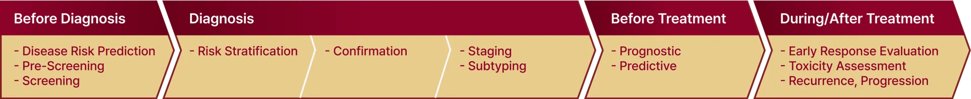 But some can potentially be used in the home. These include tools used for risk prediction and pre-screening, which occur prior to diagnosis, as well as post-treatment monitoring (evaluating treatment response or disease progression). Diagnostics involved in other stages are in most cases too professional to be done at home since they require advanced equipment like CT and MRI, or the close supervision of a doctor.