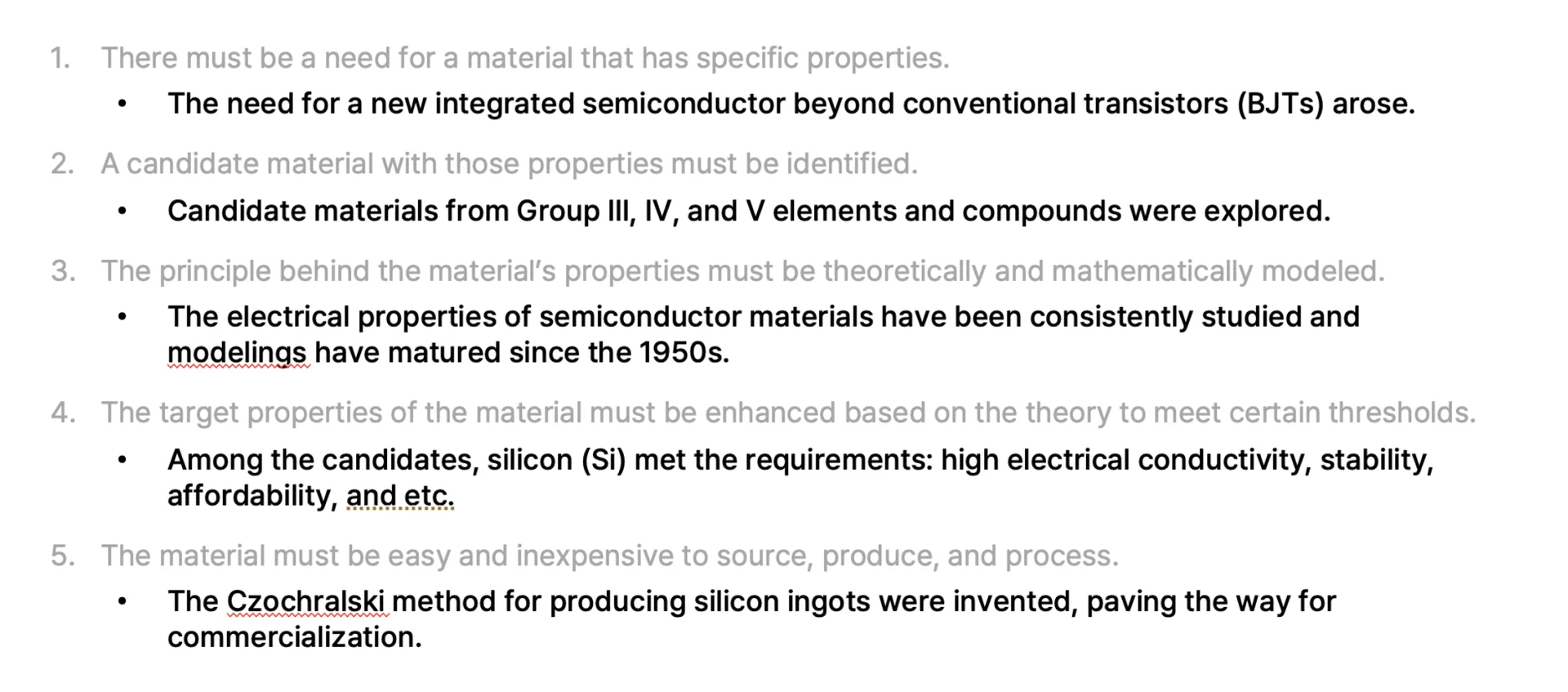 We’ve finally figured out why and how semiconductor materials behave the way they do. Now we only need to ensure that these properties are stable, the material is easily obtainable and affordable, and its physical properties are easy to work with before bringing it to market.