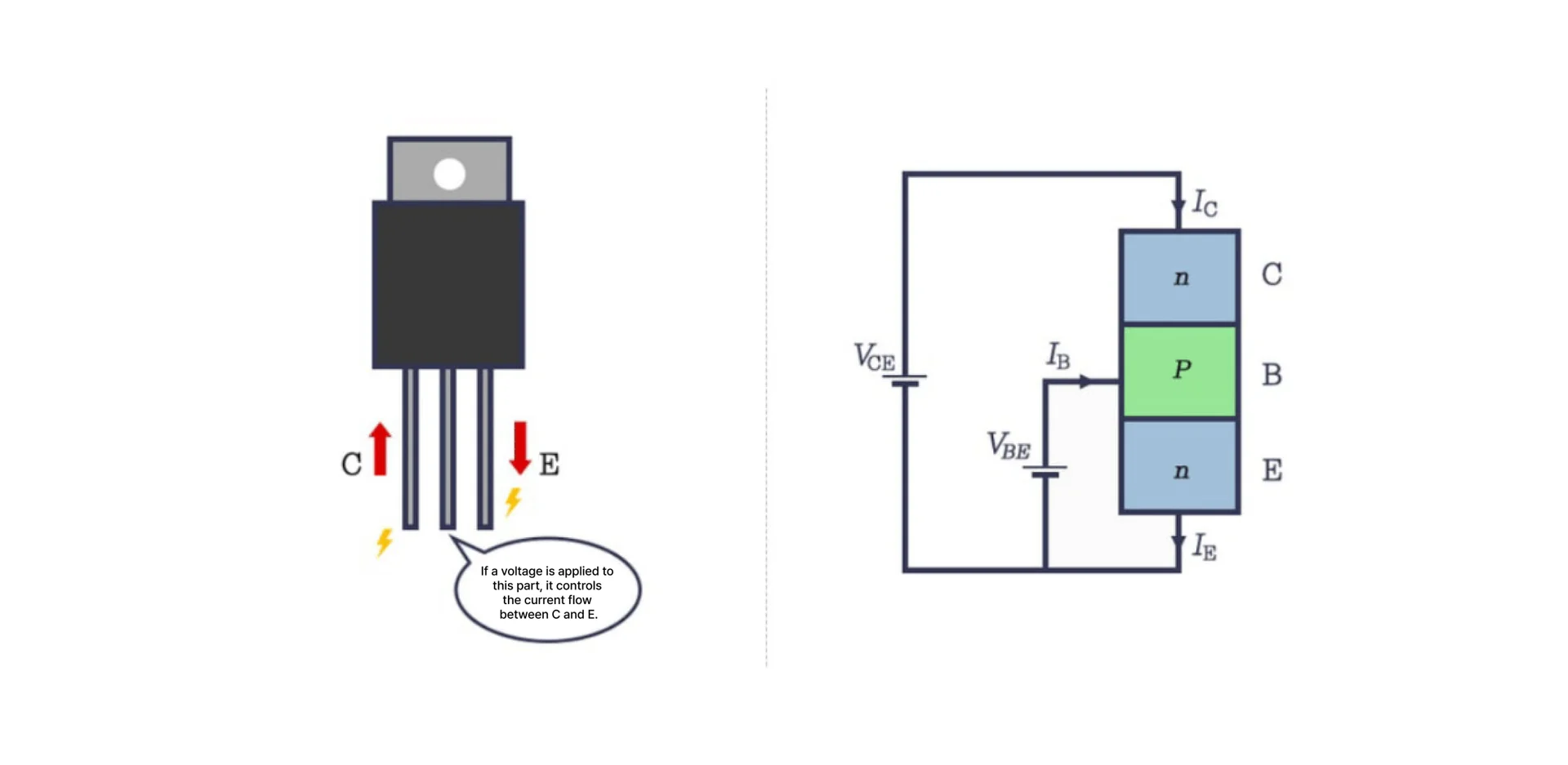 Therefore, two legs are needed to serve as the input and output for the electrical signal, and a third leg is needed to act as an on/off switch to control the signal. This is why transistors always have three legs.