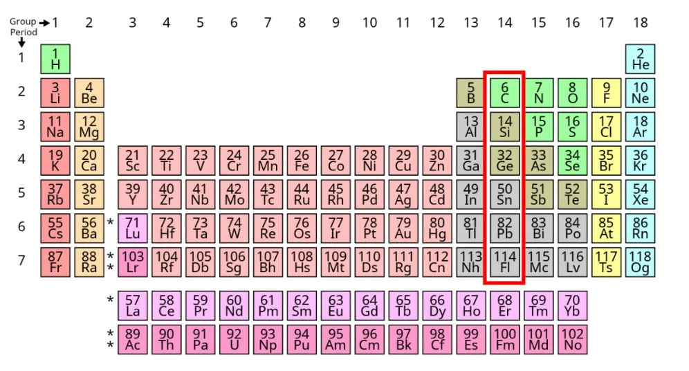 That leaves us with silicon (Si), positioned between carbon and germanium.